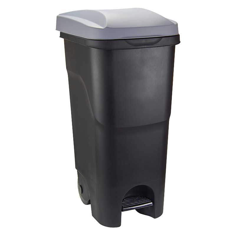 Бак 85л с педалью на колесах серый М2399