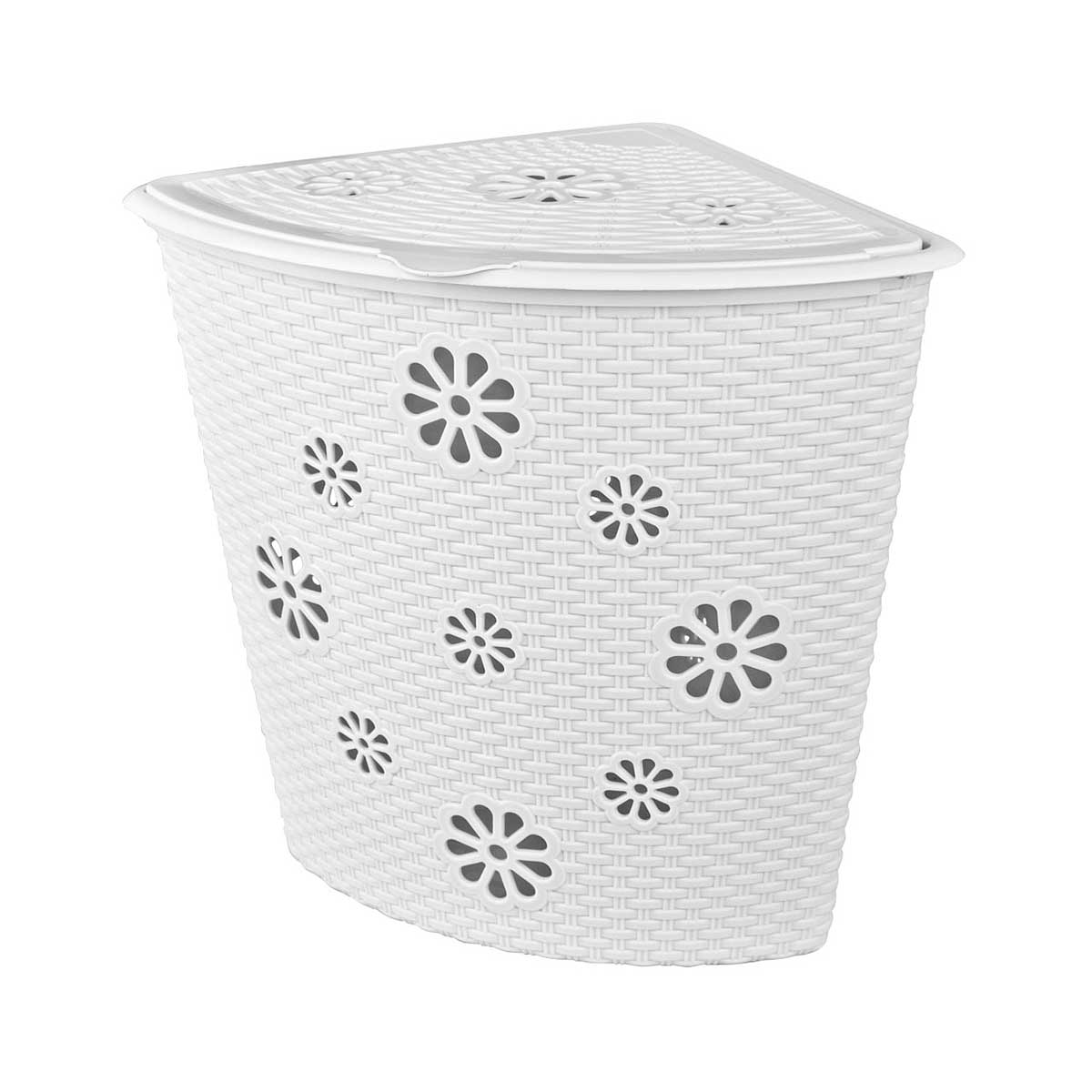 Корзина для белья угловая белая "Плетенка" 45л